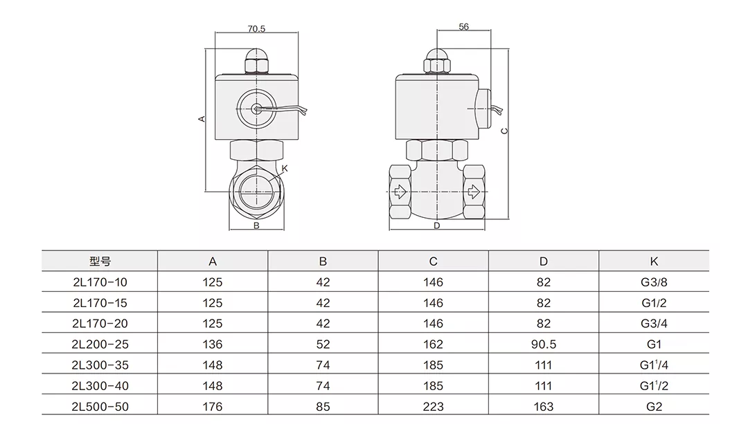 2L நீராவி சோலனாய்டு வால்வு 2 வழி அம்சங்கள்: