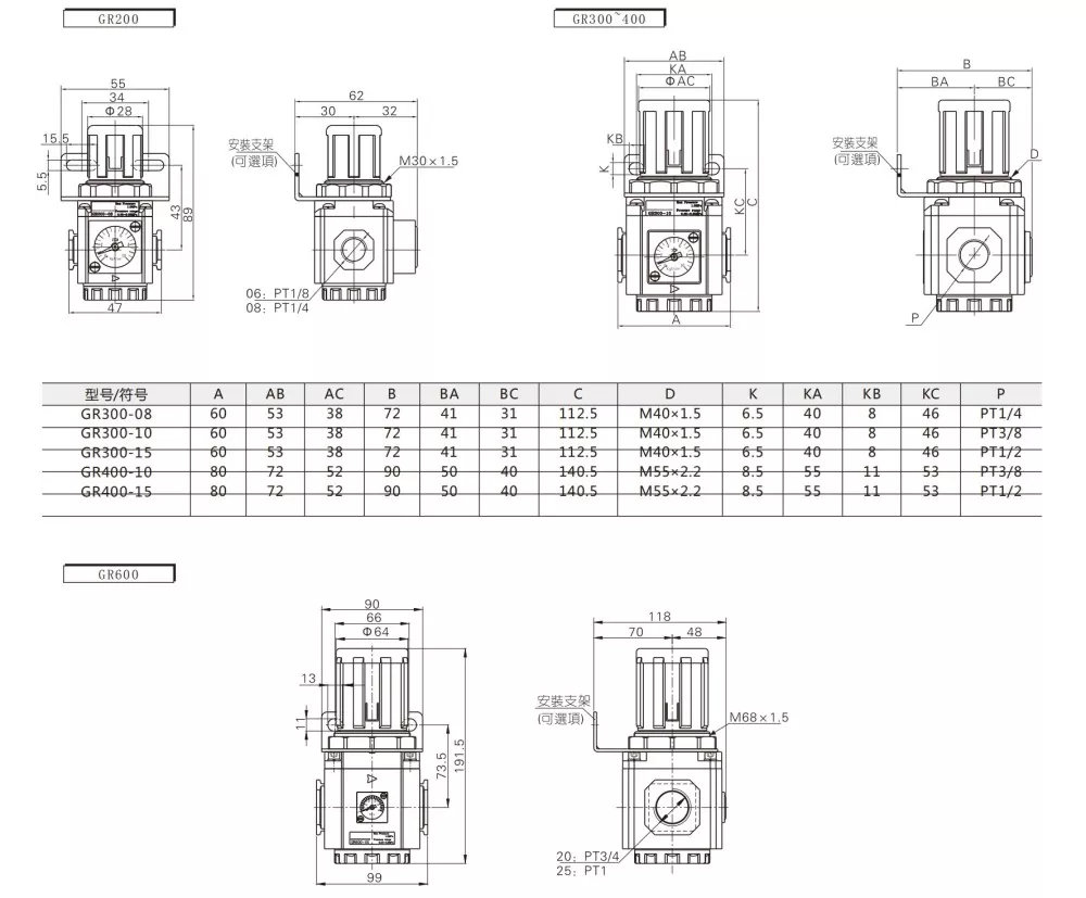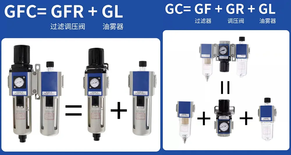GC=GF+GR+GL (வடிகட்டி + நியூமேடிக் ரெகுலேட்டர் + லூப்ரிகேட்டர்)