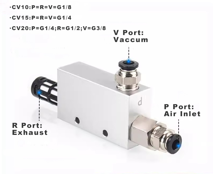 2. உங்கள் பயன்பாட்டு தேவைகளைப் பூர்த்தி செய்ய பரந்த அளவிலான வகைகள் மற்றும் செயல்திறன் கொண்ட VACUUM GENERATERS.CV தொடர் தட்டு வெற்றிட ஜெனரேட்டர் ஆகும்.