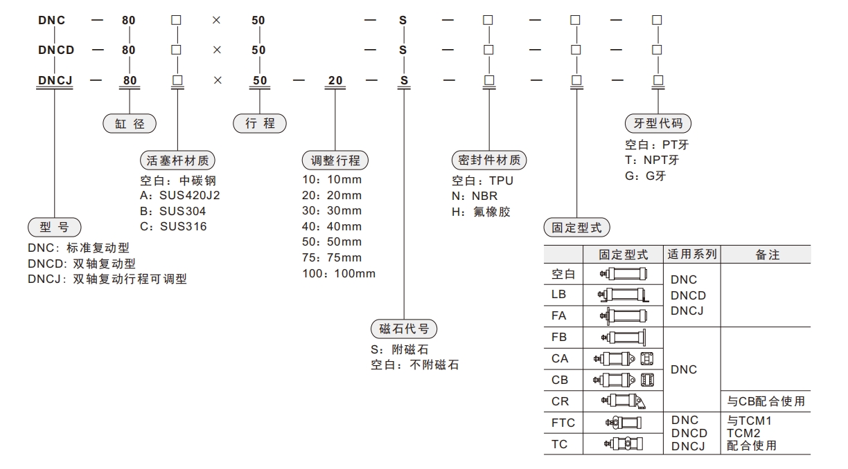 டி.என்.சி தொடர் நியூமேடிக் சிலிண்டர்கள் ஃபெஸ்டோ டி.என்.சி சிலிண்டர்கள் மற்றும் ஏர்டாக் சே சிலிண்டர்களுக்கான நேரடி மாற்றாக வடிவமைக்கப்பட்டுள்ளன, இது பெருகிவரும் பரிமாணங்கள் மற்றும் செயல்திறன் இரண்டிலும் பொருந்தக்கூடிய தன்மையை வழங்குகிறது.