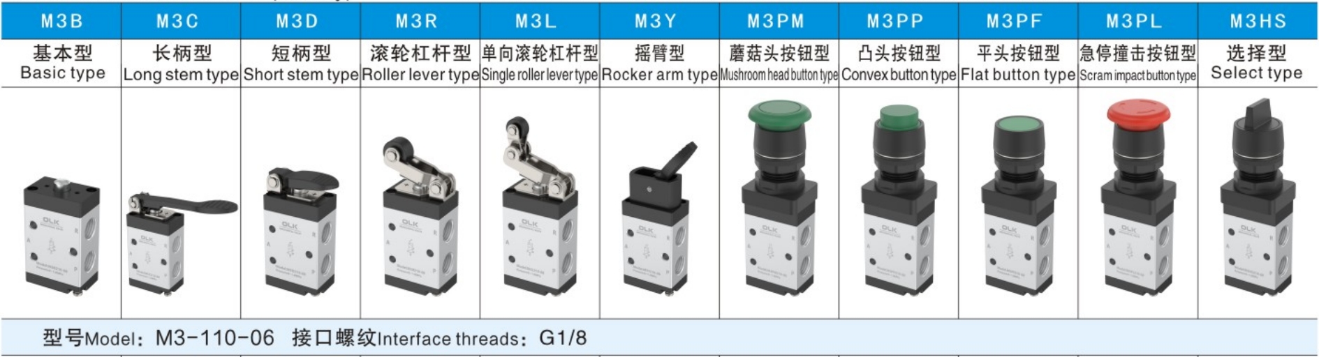 M3-210-08 மெக்கானிக்கல் வால்வு நூல் G1/4 மற்றும் M3-110-06/M3-210-06 என்பது G1/8 ஆகும்
