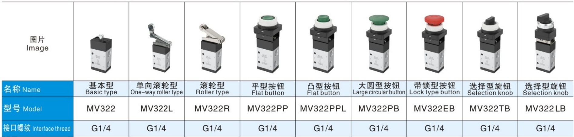 MV322 மெக்கானிக்கல் வால்வு நூல் G1/4 ஆகும்.