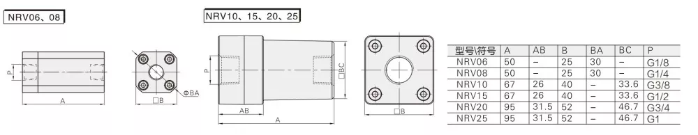 இந்த NRV காசோலை வால்வு இலகுரக, நிறுவ எளிதானது மற்றும் பராமரிப்பு இல்லாதது. இது நியூமேடிக் சிஸ்டம், வாட்டர் பம்ப்கள், ஏர் கம்ப்ரசர்கள் மற்றும் ஆட்டோமேஷன் கருவிகளில் பரவலாகப் பயன்படுத்தப்படுகிறது.