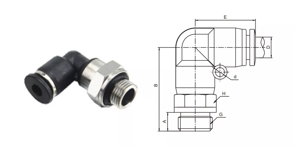 முழங்கை பொருத்துதல் the குழாய் திசையை மாற்ற அனுமதிக்கும் ஒரு நியூமேடிக் பொருத்துதல், பொதுவாக 90 டிகிரி கோணத்தில்.