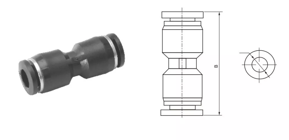 PU யூனியன் குழாய் பொருத்துதல் அவுட்லைன் பரிமாண அளவுருக்களில் நேராக உந்துதல்