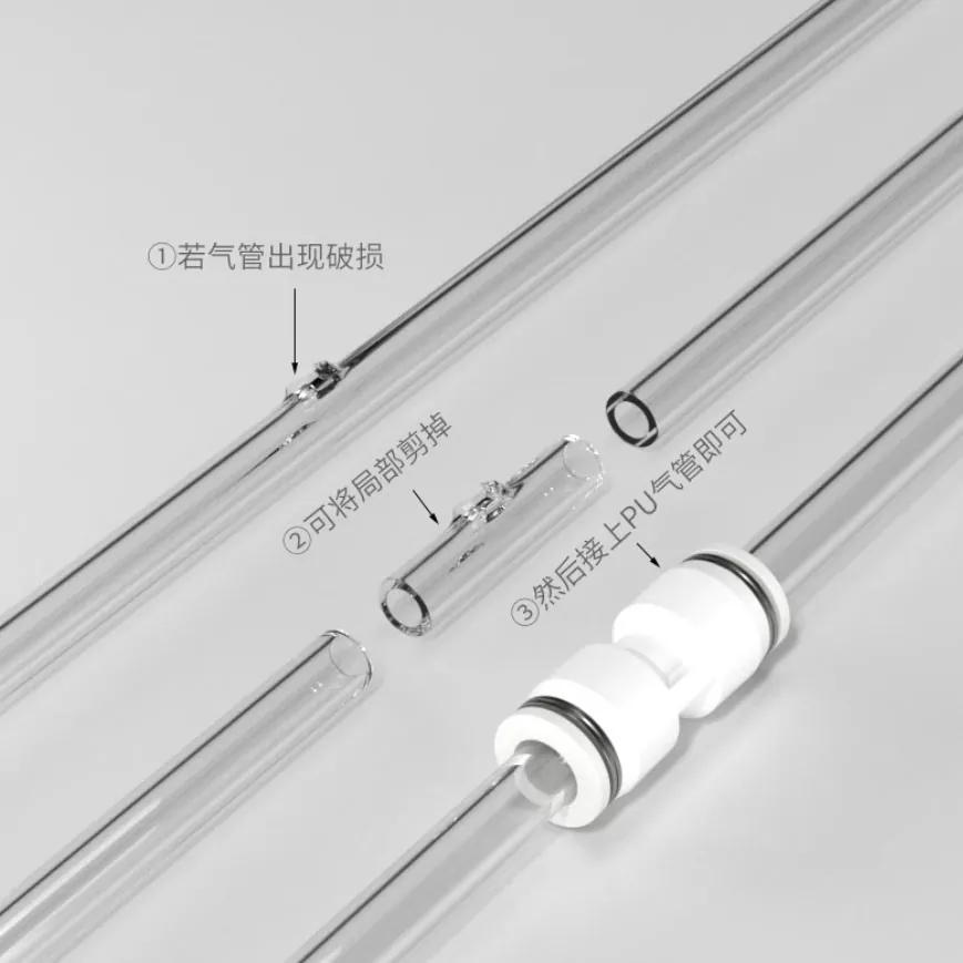 PU இருபுறமும் ஒரே காற்று குழாய் இணைக்கிறது, பி.ஜி காற்று குழாய் இருபுறமும் வெவ்வேறு விட்டம் கொண்டது