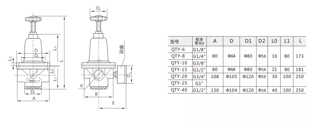 QTY அழுத்தம் சீராக்கி வால்வு அவுட்லைன் பரிமாணம்: