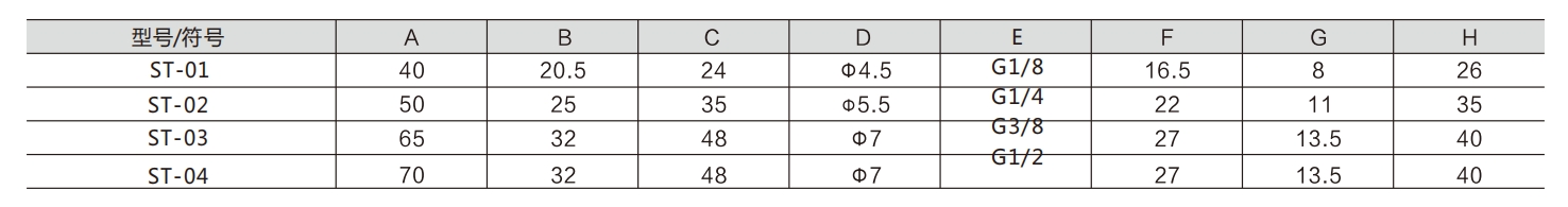 ஏர் டியூப் பொருத்துதல்கள் சரியாக தேர்ந்தெடுக்கப்படாவிட்டால், ஒரு துறைமுகத்தில் காற்று உட்கொள்ளல் அல்லது வெளியேற்றத்தை மிகச் சிறியதாக மாற்றினால், வால்வு கோர் முழுமையாக மாறாமல் போகலாம், இது அனைத்து துறைமுகங்களும் இணைக்கப்படுவதற்கு வழிவகுக்கும். இது தடுக்கப்பட வேண்டும். ST-01: G1/8; ST-02: G1/4; ST-03: G3/8; ST-04: G1/2