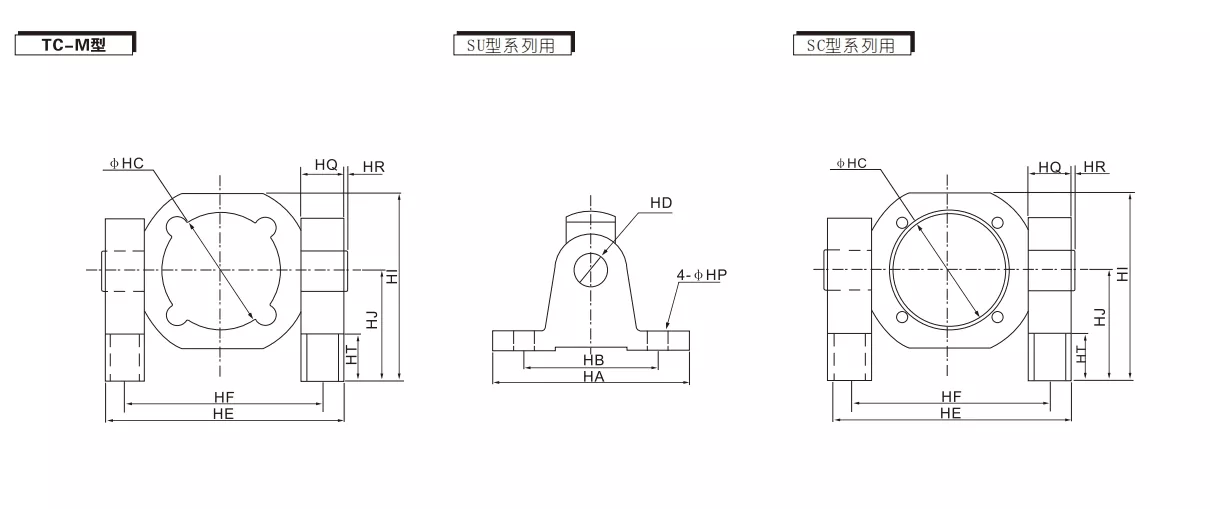 டி.சி மற்றும் டி.சி-எம் பெருகிவரும் அடைப்புக்குறி ஸ்விங் இரண்டுமே 360 ° சுழற்சி பண்புகளைக் கொண்டுள்ளன. TC/TC-M செங்குத்து ராக்கர் கை இயக்கங்களைச் செய்ய முடியும் மற்றும் காற்று சிலிண்டர் இயக்கத்தின் சுதந்திரத்தின் அளவை சரிசெய்ய முடியும், பேக்கேஜிங் உபகரணங்கள், வரிசையாக்க அமைப்புகள், சட்டசபை உபகரணங்கள் போன்ற வேலை காட்சிகளுக்கான வழக்கு.