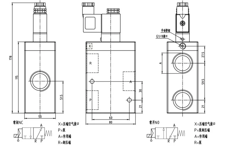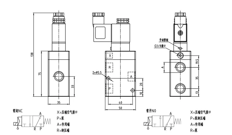 VU07 வெற்றிட சோலனாய்டு வால்வு 3 வழி சின்னம்